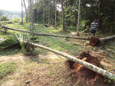 രണ്ടുദിവസം മുമ്പും ഇവിടെ ആനകള്കയറി കവുങ്ങ് നശിപ്പിച്ചിരുന്നു. കരുളായി വനത്തില്നിന്നും ചെറുപുഴ മുറിച്ചുകടന്നാണ് ഈ ഭാഗങ്ങളിലേക്ക് ആനക്കൂട്ടമെത്തുന്നത്. വന്യമൃഗശല്യം തടയുന്നതിന് നേരത്തെ പുഴയ്ക്കിക്കരെ വനംവകുപ്പ് സൗരോര്ജ്ജവേലി സ്ഥാപിച്ചിരുന്നു. പരിചരണമില്ലാത്തതിനാല് അത് നശിച്ചുകിടക്കുകയാണ്.